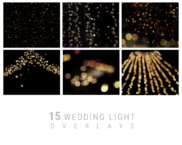❤ 15 Wedding Light Overlays in PNG File Format. PNG files come on a black background. Use the screen layer function for best results.
