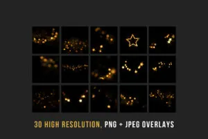 These Christmas bokeh overlays are designed to effortlessly enhance your photographs and digital artwork with the charm of twinkling lights. Whether you’re planning a Christmas photoshoot, capturing the magic of the season in your Christmas photography, or showcasing the beauty of winter photography, our overlays add a luminous touch to your visuals, making them truly magical. Immerse your audience in the festive glow of Christmas lights bokeh, featuring delicate and intricate patterns that evoke the warmth and joy of the holiday season. The gold bokeh lights add a touch of elegance and sophistication, elevating your designs to a whole new level of enchantment.