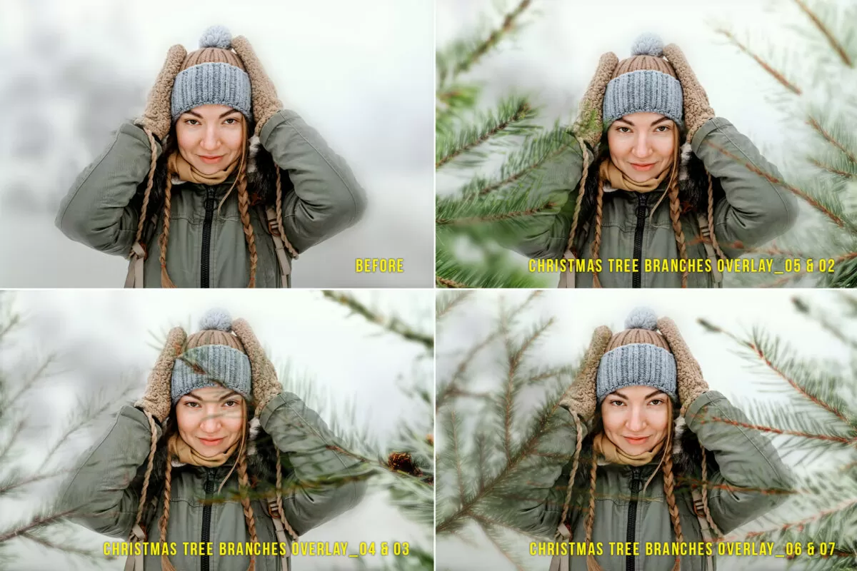 ❤ These fir and pine branch Christmas tree photo overlays can be used in any program that uses layers (Photoshop, Photoshop Elements, Canva, GIMP etc.) Perfect for use as Holiday photoshoots, Christmas photograhy, Maternity overlays, wedding overlays, Winter overlays, or any photo composite.